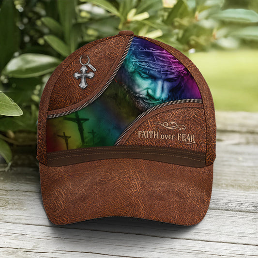 Faith Over Fear Jesus Leather Style Baseball Cap