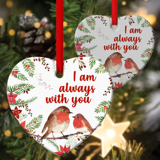 I Am Always With You - Lovely Robin Redbreast Ceramic Heart Ornament - Christmas Decor - Funny Ornament
