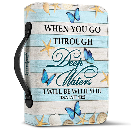 When You Go Through Deep Waters I Will Be With You Butterfly Isaiah 43 2 Personalized Bible Cover - Pastor's Bible Covers