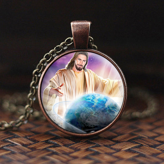Jesus With Earth - Jesus Christ Necklace - Religious Pendant - Religious Necklace - Ciaocustom