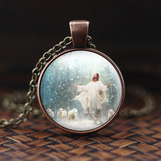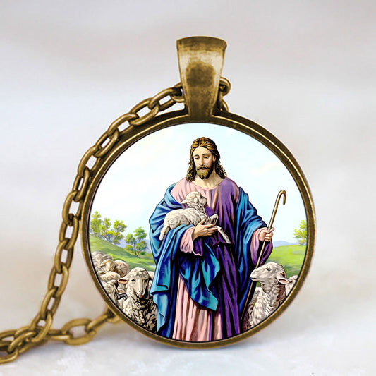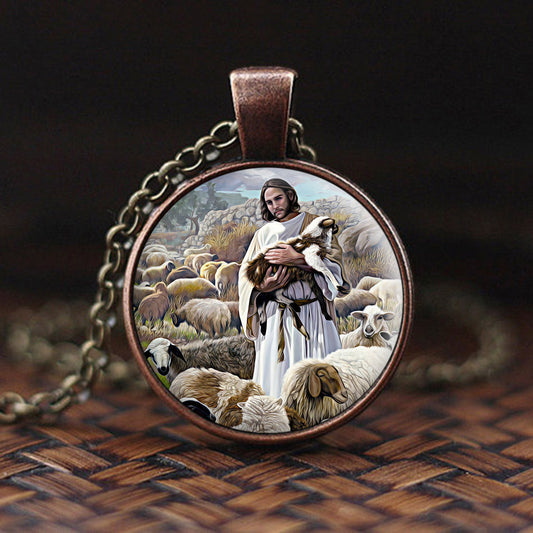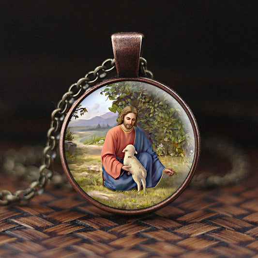 Jesus And Sheep - Religious Pendant - Religious Necklace - Catholic Necklace - Ciaocustom