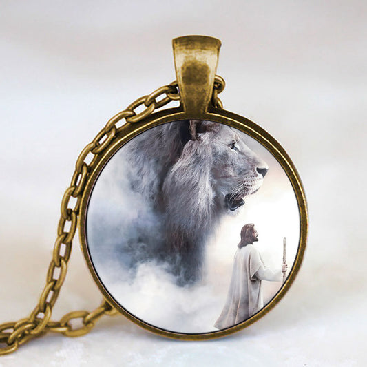 Jesus and Lion - Religious Pendant - Jesus Necklace - Religious Necklace - Ciaocustom