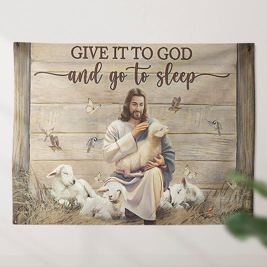 Give It To Go And Go To Sleep - Jesus Hugging Sheep - Tapestry Wall Hanging - Christian Wall Art - Tapestries - Ciaocustom