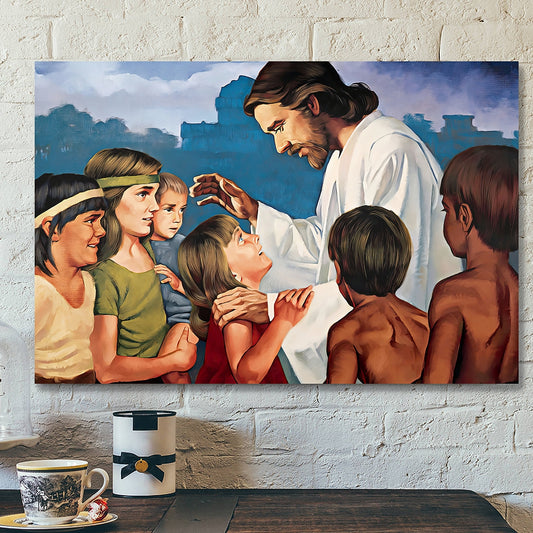 Jesus Loves The Little Children - Jesus Pictures - Jesus Canvas Poster - Jesus Wall Art - Faith Canvas - Gift For Christian - Ciaocustom