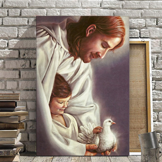 Jesus, Child & White Dove Canvas Poster - Parting Waters - Christian Wall Art - Ciaocustom