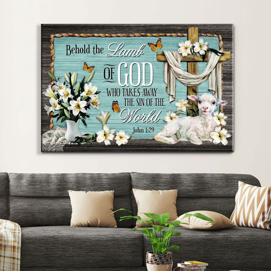 Christian Wall Art John 129 Behold The Lamb Of God Bible Verse Canvas Print - Religious Wall Decor