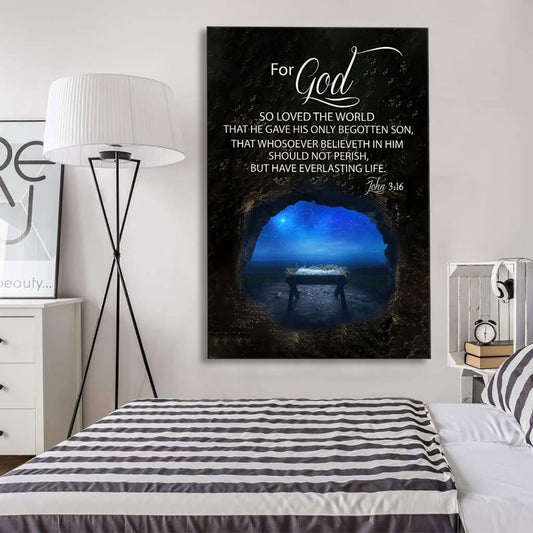 For God So Loved The World John 316 Canvas Wall Art - Bible Verse Wall Art - Christian Decor