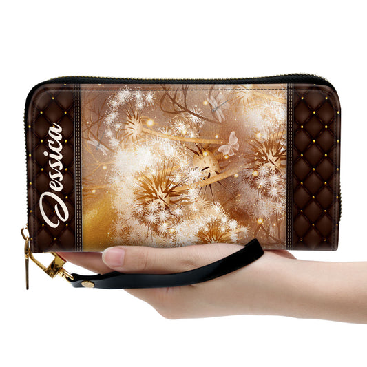 Women Clutch Purse - Grace Be With You 2 John 13 Spiritual Gift Bible Verse For Women Personalized Dandelion Zippered Leather Clutch Purse