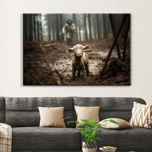 Jesus Running After A Lost Lamb, Jesus Lamb Of God, Wall Art Canvas