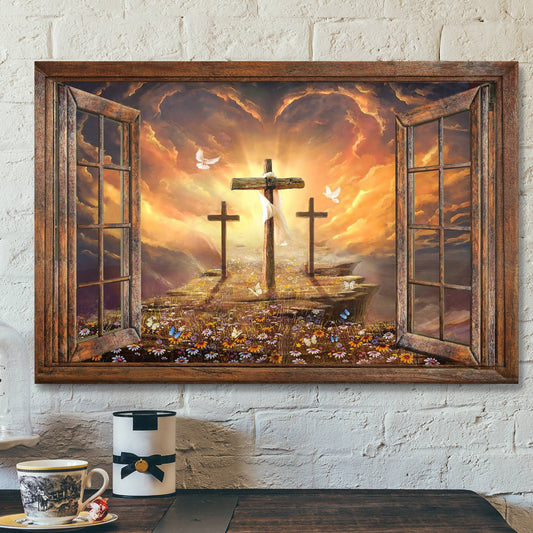 Three Crosses Canvas Prints - 3 Crosses On A Hill Painting - Christian Wall Art - Ciaocustom