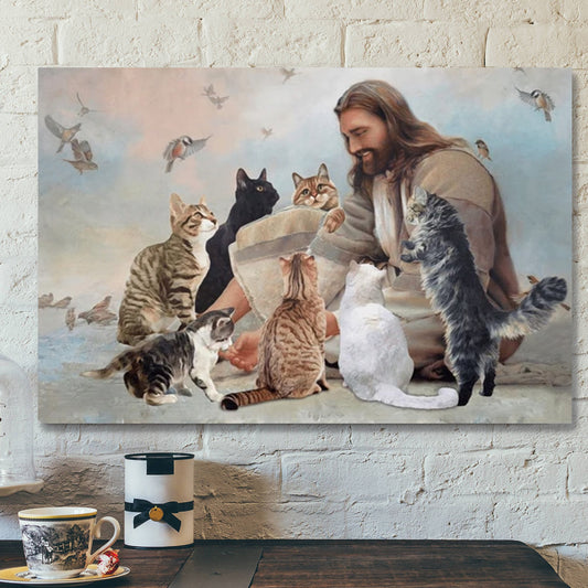 Jesus Is Surrounded By Cats Canvas Wall Art - Jesus With Cats Wall Decor - Ciaocustom