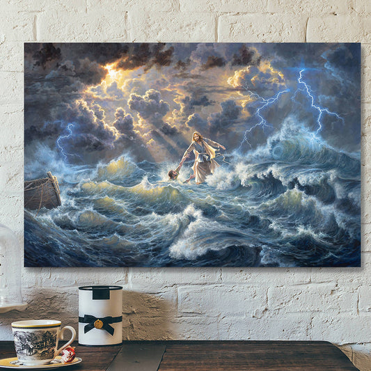 Jesus Canvas - Scripture Canvas Wall Art - Jesus Saves Peter From Drowning Canvas Poster - Ciaocustom