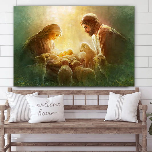 Immanuel Canvas Wall Art - Mary, Joseph and Lambs Canvas Poster - Jesus Christ Canvas - Christian Wall Decor - Ciaocustom