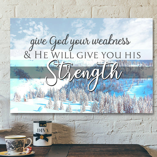 Scripture Wall Decor - Wall Art - Give God Your Weakness And He Will Give You His Strength Snowland Canvas Poster - Ciaocustom