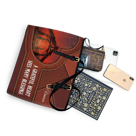 A Grateful Heart Sees Many Blessings Personalized Pu Leather Tote Bag For Women - Mom Gifts For Mothers Day