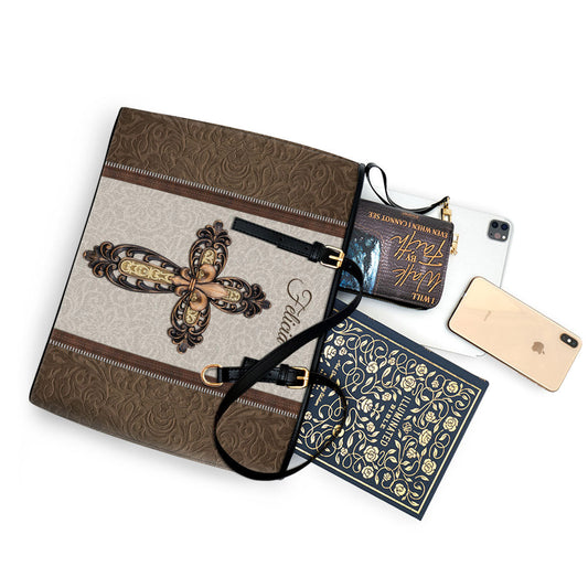 Cross Personalized Pu Leather Tote Bag For Women - Mom Gifts For Mothers Day