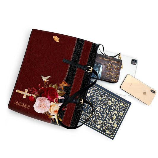 For There Shall Be A Performance Of Those Things Personalized Pu Leather Tote Bag For Women - Mom Gifts For Mothers Day
