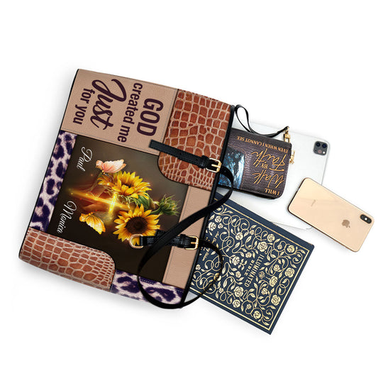 God Created Me Just For You Personalized Pu Leather Tote Bag For Women - Mom Gifts For Mothers Day