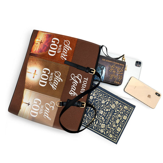 Today‘s Goals Stay With God Large Pu Leather Tote Bag For Women - Mom Gifts For Mothers Day
