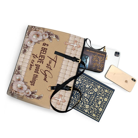 Trust God And Believe Good Things To Come Large Pu Leather Tote Bag For Women - Mom Gifts For Mothers Day