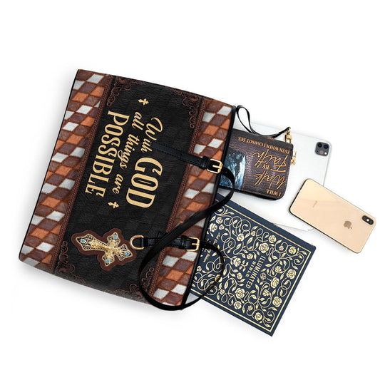 With God All Things Are Possible Large Pu Leather Tote Bag For Women - Mom Gifts For Mothers Day