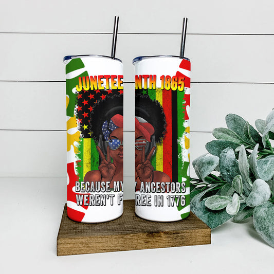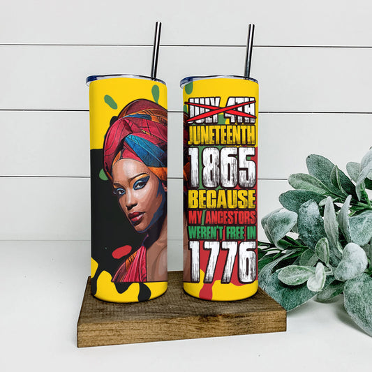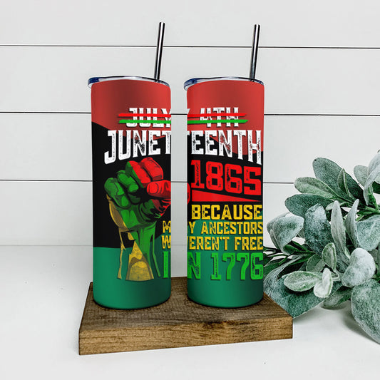Because My Ancestors Weren't Free In 1776 - Juneteenth Tumbler - Stainless Steel Tumbler - 20 oz Skinny Tumbler - Tumbler For Cold Drinks - Ciaocustom