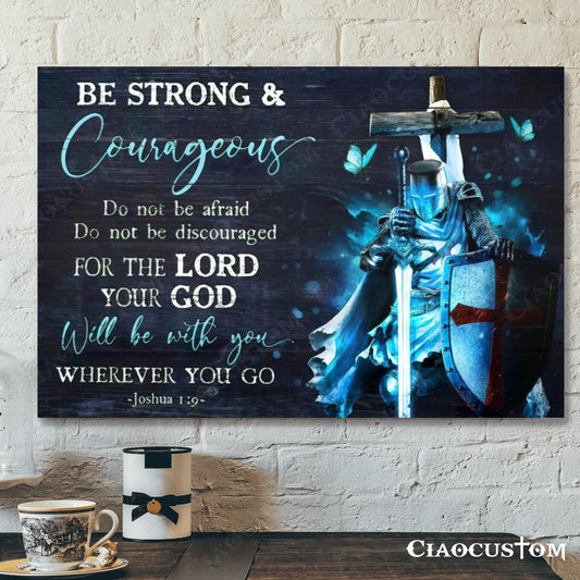 Be Strong & Courageous - Cross - Jesus Canvas Wall Art - Bible Verse Canvas - Christian Canvas Wall Art - Ciaocustom