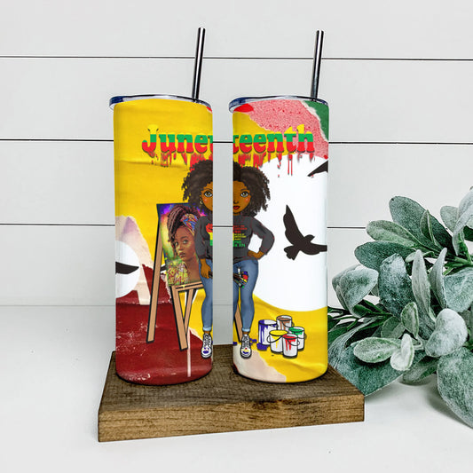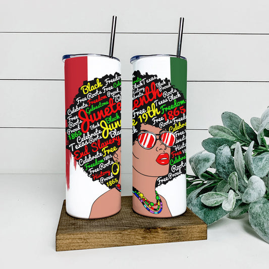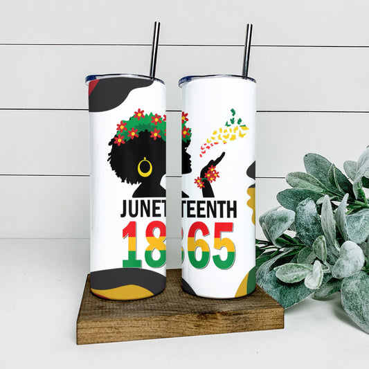 Black Girl - Juneteenth 1865 - Juneteenth Tumbler - Stainless Steel Tumbler - 20 oz Skinny Tumbler - Tumbler For Cold Drinks - Ciaocustom
