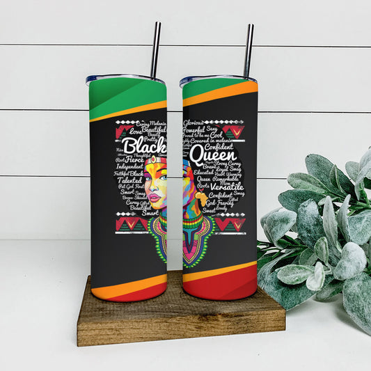 Black Queen - Juneteenth - Juneteenth Tumbler - Stainless Steel Tumbler - 20 oz Skinny Tumbler - Tumbler For Cold Drinks - Ciaocustom