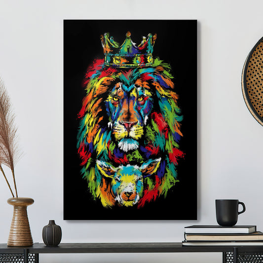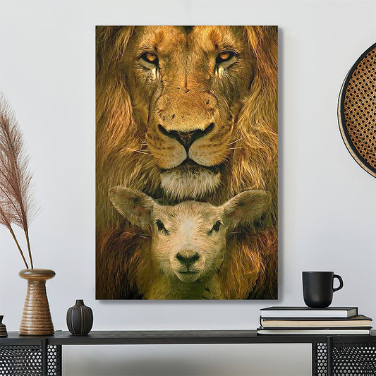 Lion And The Lamb Canvas Poster - Christian Wall Decor - Ciaocustom