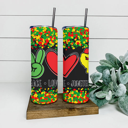 Peace Love Juneteenth - Juneteenth Tumbler - Stainless Steel Tumbler - 20 oz Skinny Tumbler - Tumbler For Cold Drinks - Ciaocustom