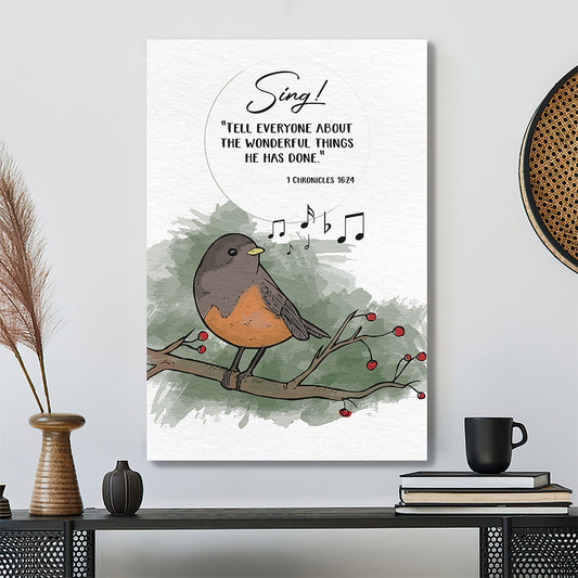 Sing - Tell Everyone About The Wonderful Things He Has Done - Jesus Canvas - Bible Verse Canvas Wall Art - Scripture Canvas - Ciaocustom