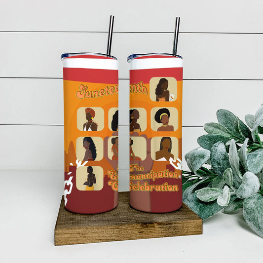 The Emanclipation Celebration - Juneteenth Tumbler - Stainless Steel Tumbler - 20 oz Skinny Tumbler - Tumbler For Cold Drinks - Ciaocustom
