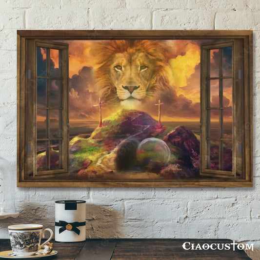 The Lion And Cross - Jesus Painting - Jesus Poster - Jesus Canvas - Christian Canvas Wall Art - Christian Gift - Ciaocustom