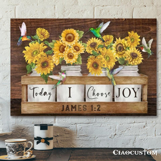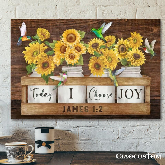 Today I Choose Joy - Sunflowers And Hummingbirds - Jesus Canvas Wall Art - Bible Verse Canvas - Christian Canvas Wall Art - Ciaocustom