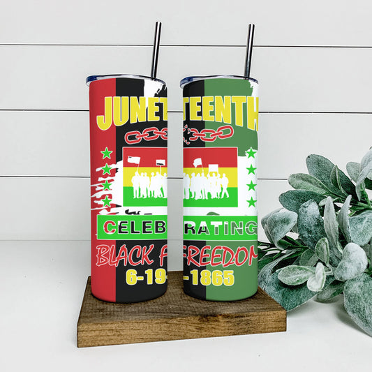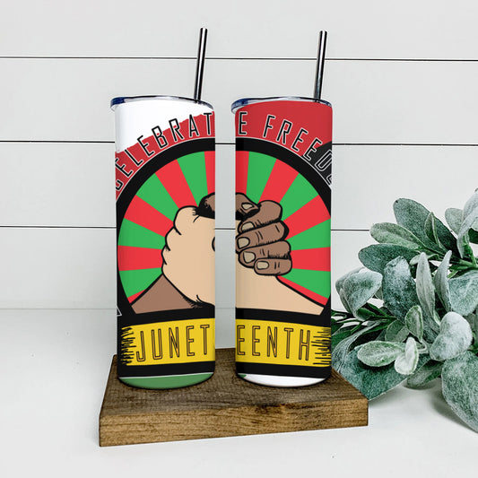 Celebrate Freedom Juneteenth - Juneteenth Tumbler - Stainless Steel Tumbler - 20 oz Skinny Tumbler - Tumbler For Cold Drinks - Ciaocustom