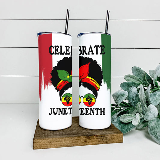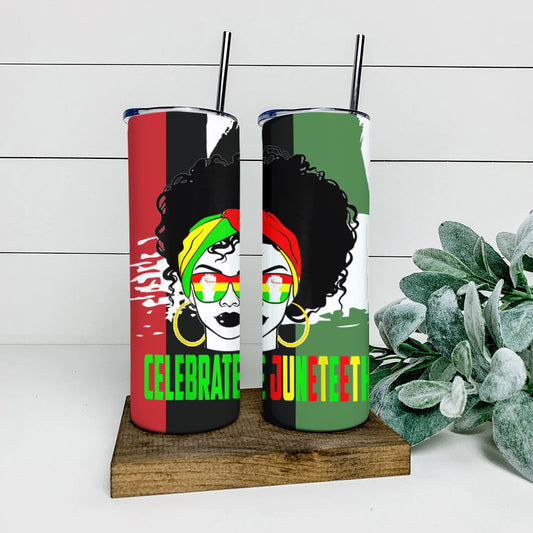 Celebrate Juneteeth - Black Girl - Juneteenth Tumbler - Stainless Steel Tumbler - 20 oz Skinny Tumbler - Tumbler For Cold Drinks - Ciaocustom