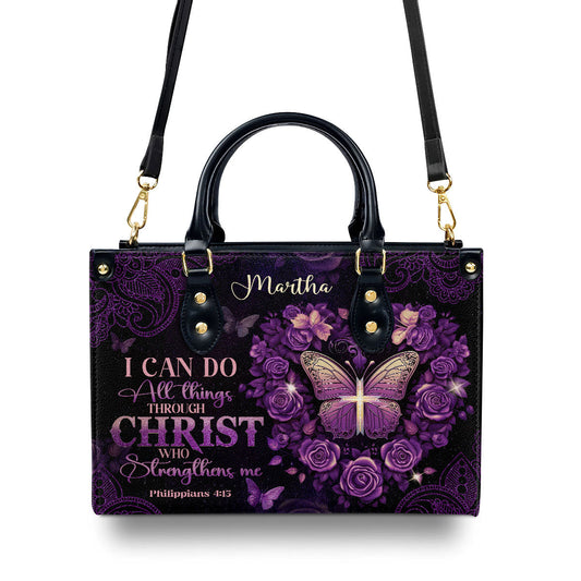 I Can Do All Things Personalized Leather Handbag With Zipper - Inspirational Gift Christian Ladies