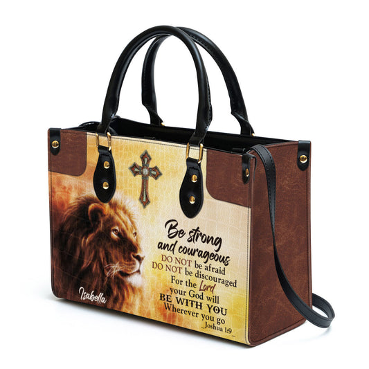 Personalized Be Strong And Courageous Unique Lion Leather Bag - Christian Pu Leather Bags For Women