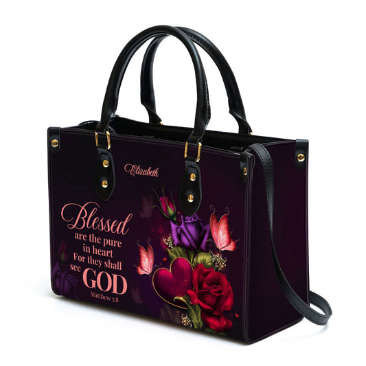 Personalized Leather Bag For Women - Blessed Are The Pure In Heart For They Shall See God Leather Bag Leather Bag - Christian Gifts for Women