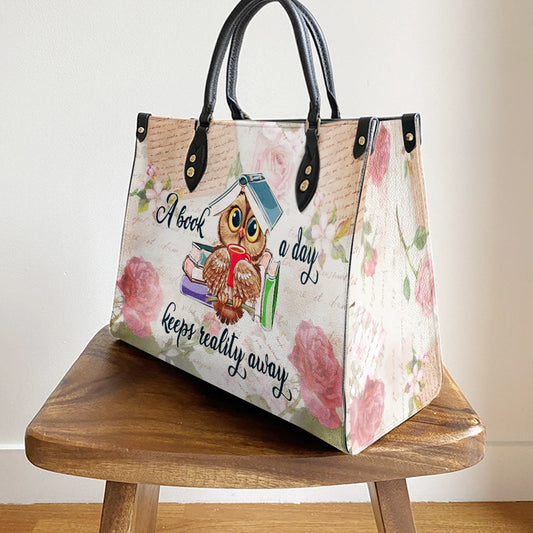 Owl A Book A Day Keeps Reality Away Leather Bag - Gift For Owl Lovers - Women's Pu Leather Bag