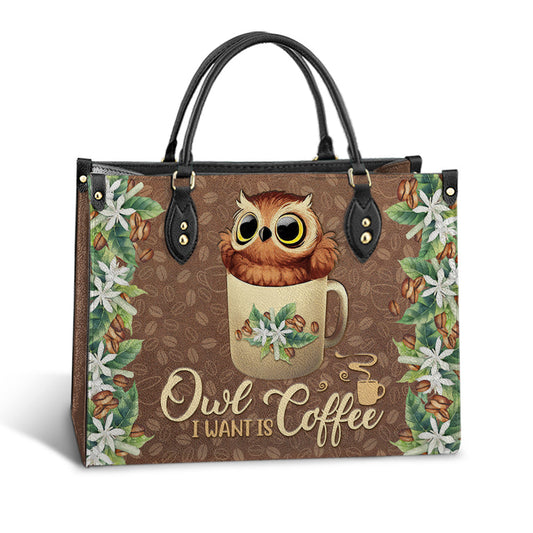 Owl I Want Is Coffee Leather Bag - Gift For Owl Lovers - Women's Pu Leather Bag