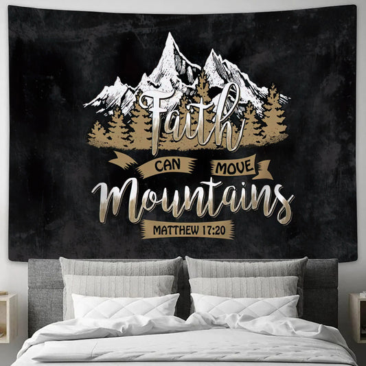 Bible Verse Wall Art Faith Can Move Mountains Matthew 1720 Tapestry - Religious Tapestry - Christian Wall Tapestry