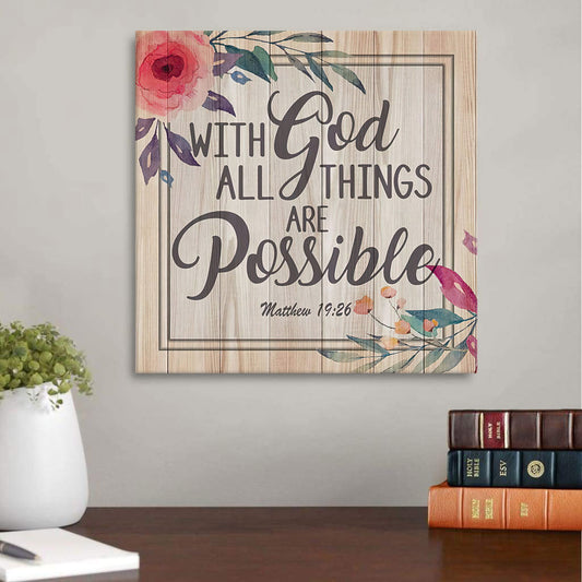 Bible Verse Wall Art Matthew 1926 With God All Things Are Possible Canvas Print