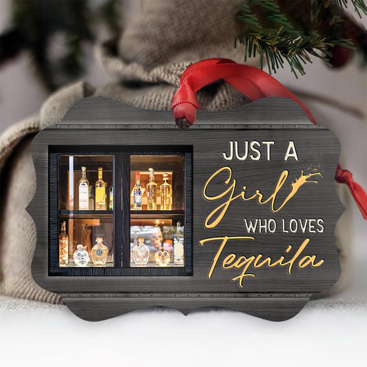 Wine Just A Girl Who Loves Tequila Metal Ornament - Christmas Ornament - Christmas Gift