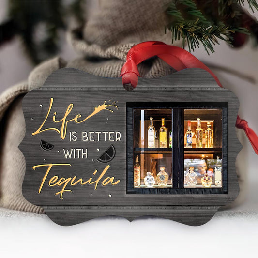 Wine Life Is Better With Tequila Metal Ornament - Christmas Ornament - Christmas Gift