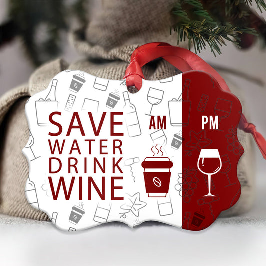 Wine Save Water Drink Wine Metal Ornament - Christmas Ornament - Christmas Gift