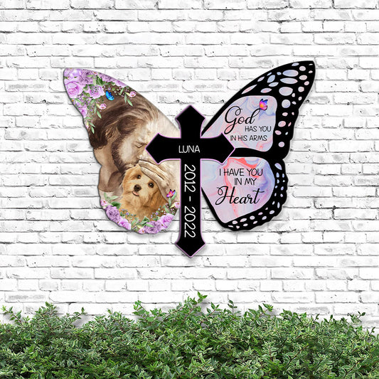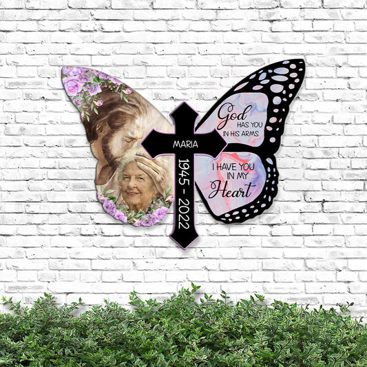 Personalized Memorial Sign - Custom Memorial Metal Signs - Butterfly - Memorial Wall Plaques - Christian God Has You In His Arms - Ciaocustom