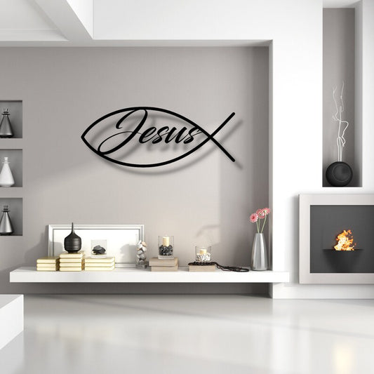 • Jesus Fish Metal Sign - Fish Metal Wall Art - Christian Fish - Fish Sign Jesus - Black Metal Fish Wall Art - Gift For Christian - Ciaocustom