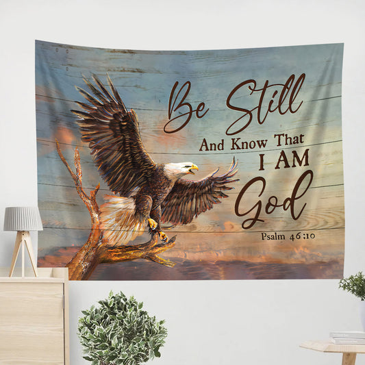 Awesome Eagle Sunset Painting Canvas Be Still And Know That I Am God Tapestry - Christian Wall Tapestries